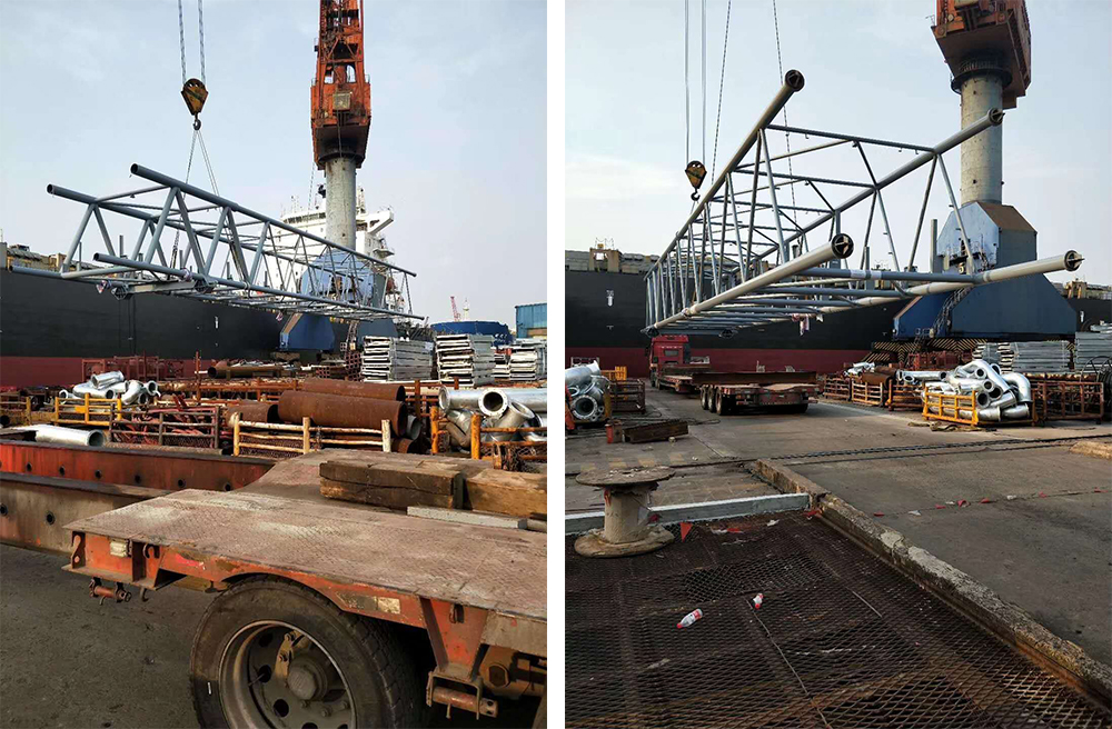Canadian EMS company 18080 project 96 meters dump jib equipment, after the coordination of many efforts, finally successfully delivered to China Shipbuilding Heavy Industry Chengxi Shipyard, thank all participants of this project support and help