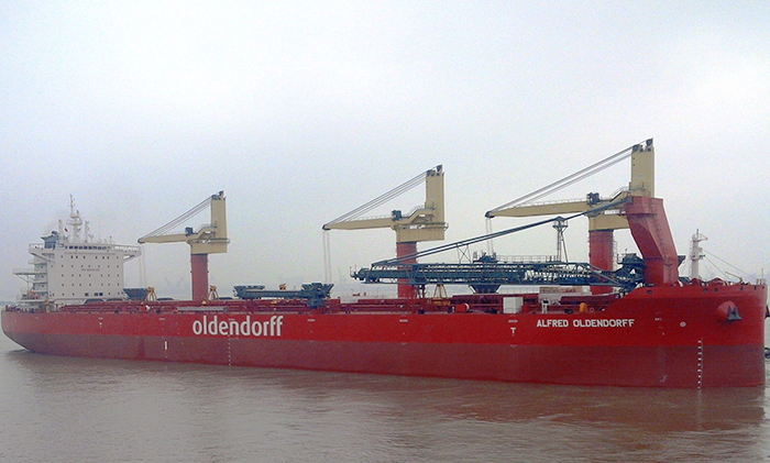 甲板式自卸船伸缩臂架装船图